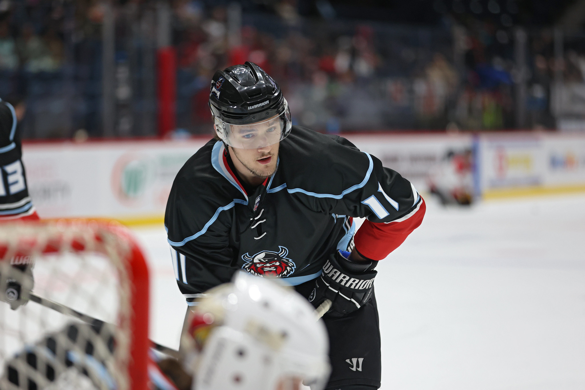 After being sent to another power play at the start of the second period, the Bulls tied it with CJ Walker’s first goal of the season. The period continued in tame fashion until the Mayhem surrendered another power play to the Bulls, one they would convert upon yet again. Saretsky picked up a loose puck after it caught Michael Krupinski in the face and put it by Bailey Brkin to take the lead for the Bulls. Shortly after, Matt Wood scored an unassisted goal to extend the lead for Birmingham. Matteo Ybarra was able to shove a loose puck by Hayden Stewart just before the break to bring the Mayhem back within one.