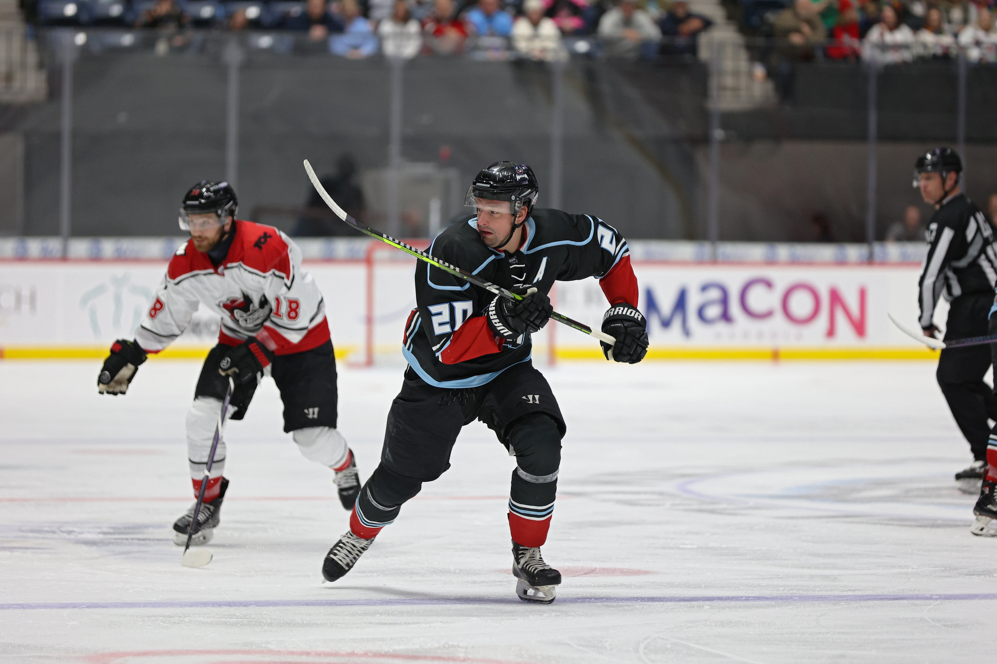 In a high-pace first period, Macon and Huntsville traded chances frequently. Tempers boiled over as on consecutive face-offs, Connor Fries dropped the gloves with Connor May, and Max Messier took it to Gehrig Lindberg. Moments later, Jake Goldowski sniped one past Brian Wilson to take the lead for the Mayhem and open the scoring. Both teams had power play chances through the rest of the period, but the Mayhem went to the break up 1-0 after 20.