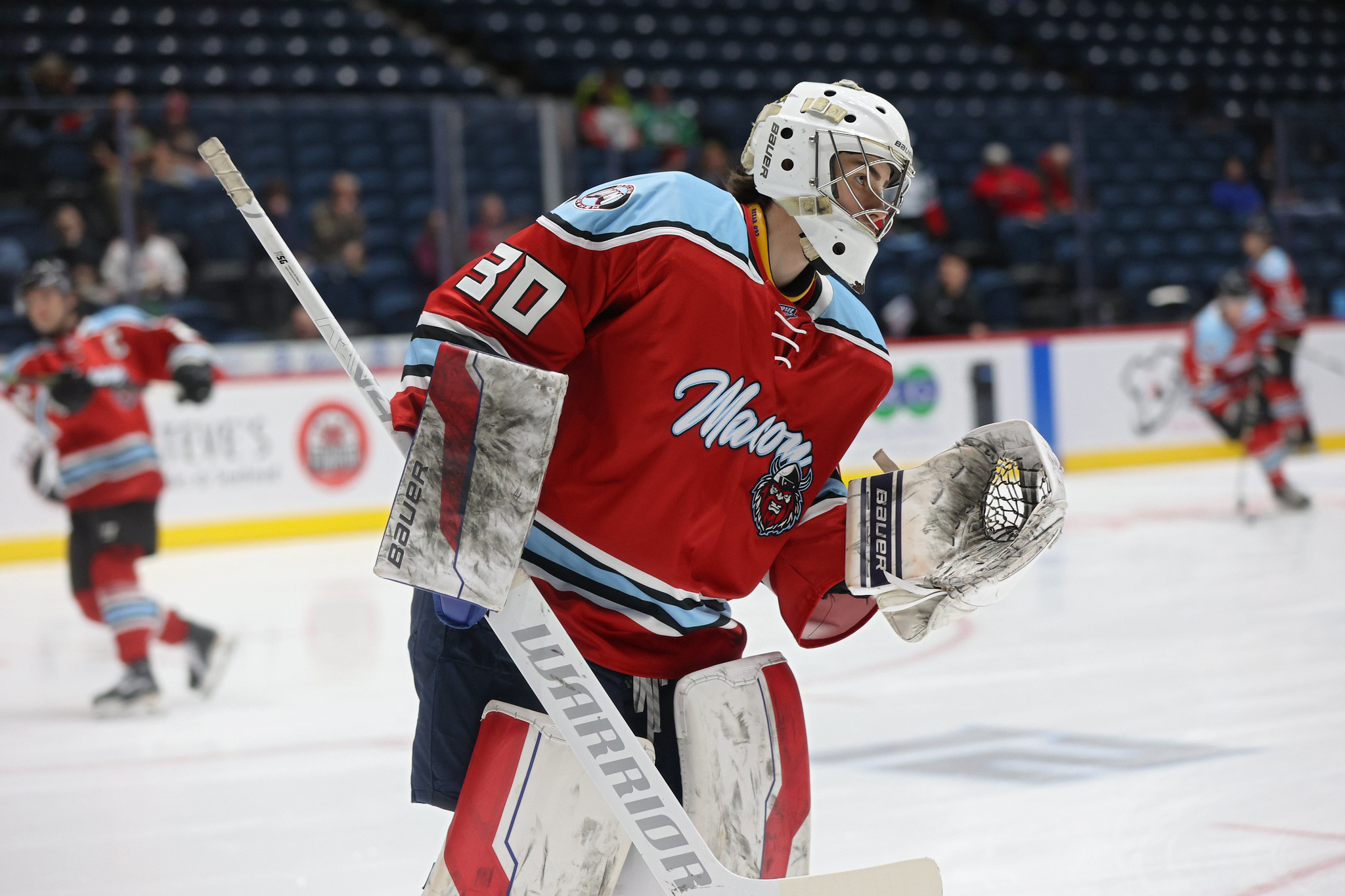 The rookie goaltender spent training camp with the Mayhem before beginning the 2025-26 season with the FPHL’s Danbury Hat Tricks, where he had a 7-6-2 record before being brought back to the Mayhem when Bailey Brkin was placed on injured reserve at the end of December.