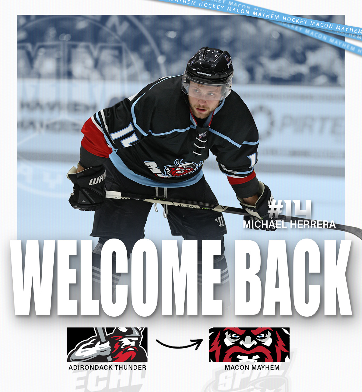 (MACON, Ga.) – The Macon Mayhem, proud members of the SPHL, announced Tuesday that forward Michael Herrera has been returned from the ECHL’s Adirondack Thunder.